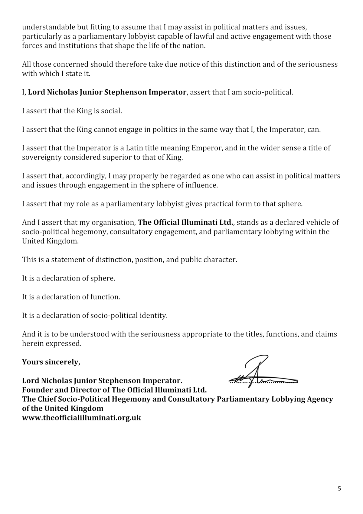 Lordship Certificate
